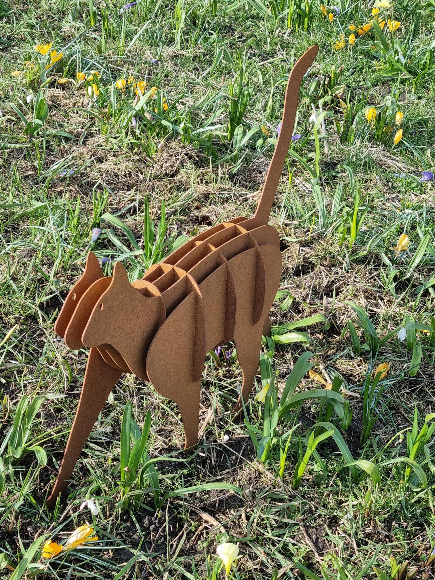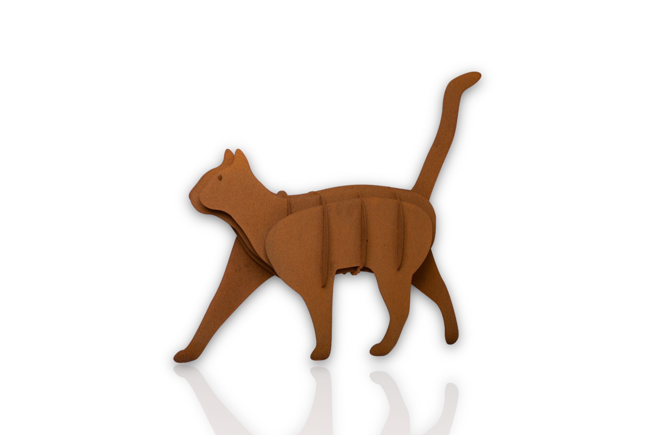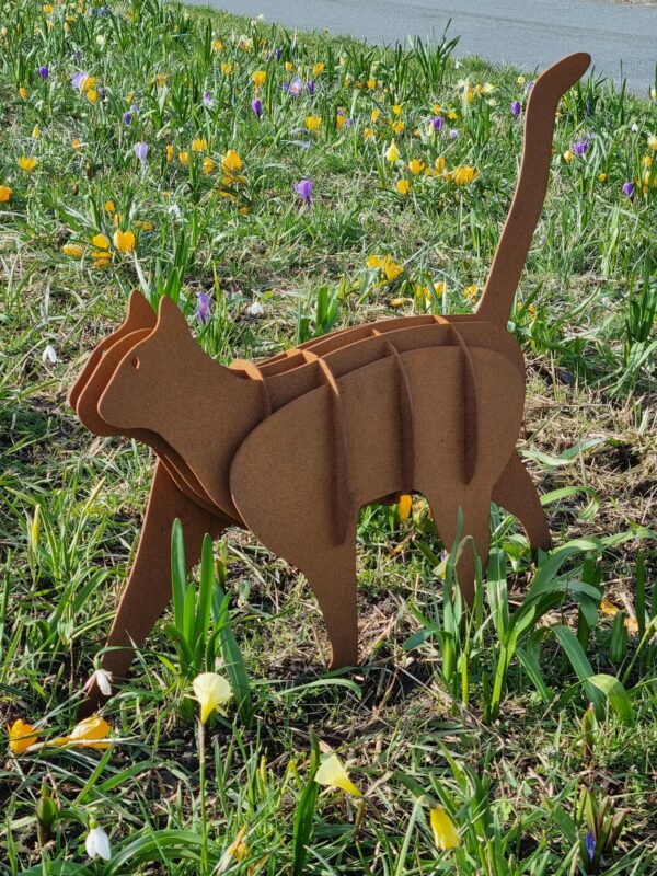 De Kat is een stijlvol 3D beeld gemaakt van cortenstaal. Heel decoratief voor in huis of buiten in de tuin. Leuk om cadeau te geven aan een poezenliefhebber of om zelf te hebben. De losse onderdelen van het beeld worden machinaal gesneden en vervolgens met de hand in elkaar gezet. Vervolgens doet de natuur de rest.