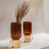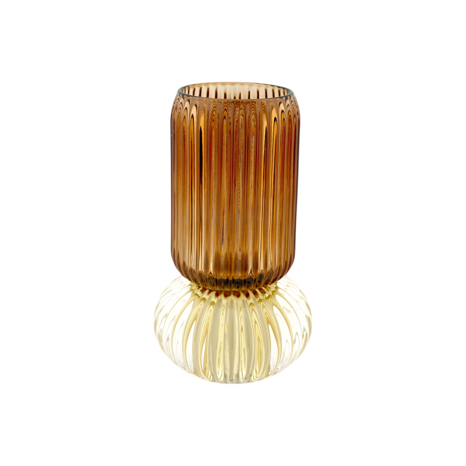 Bovenop bevindt zich een transparante bruine glazen vaas. Perfect voor een paar losse takken of droogbloemen, waardoor je eenvoudig een sfeervol geheel creëert.