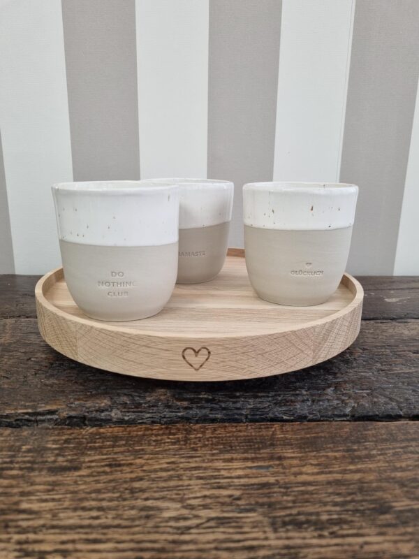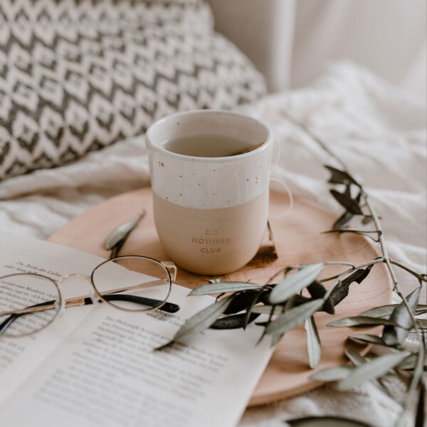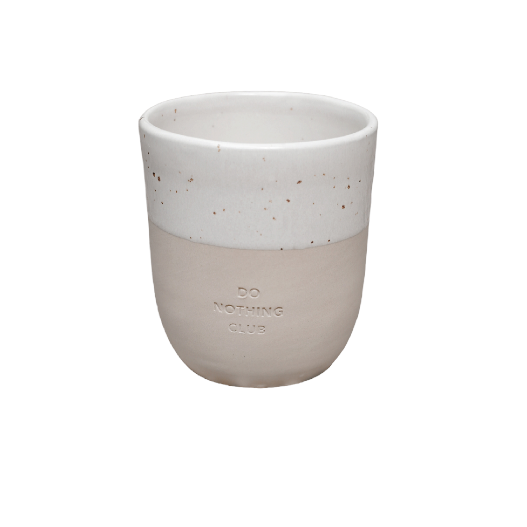 Het minimalistische design en de natuurlijke kleurnuances worden afgerond door de golvende vorm. Het hoogtepunt van de mok is het tekstje in een prachtig blind reliëf. Want wie wil er niet af en toe lid zijn van de Do Nothing Club?
