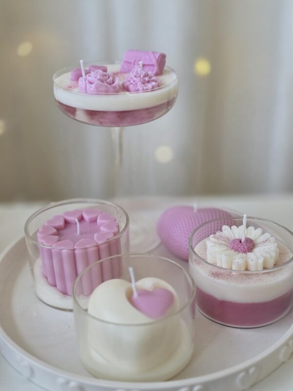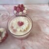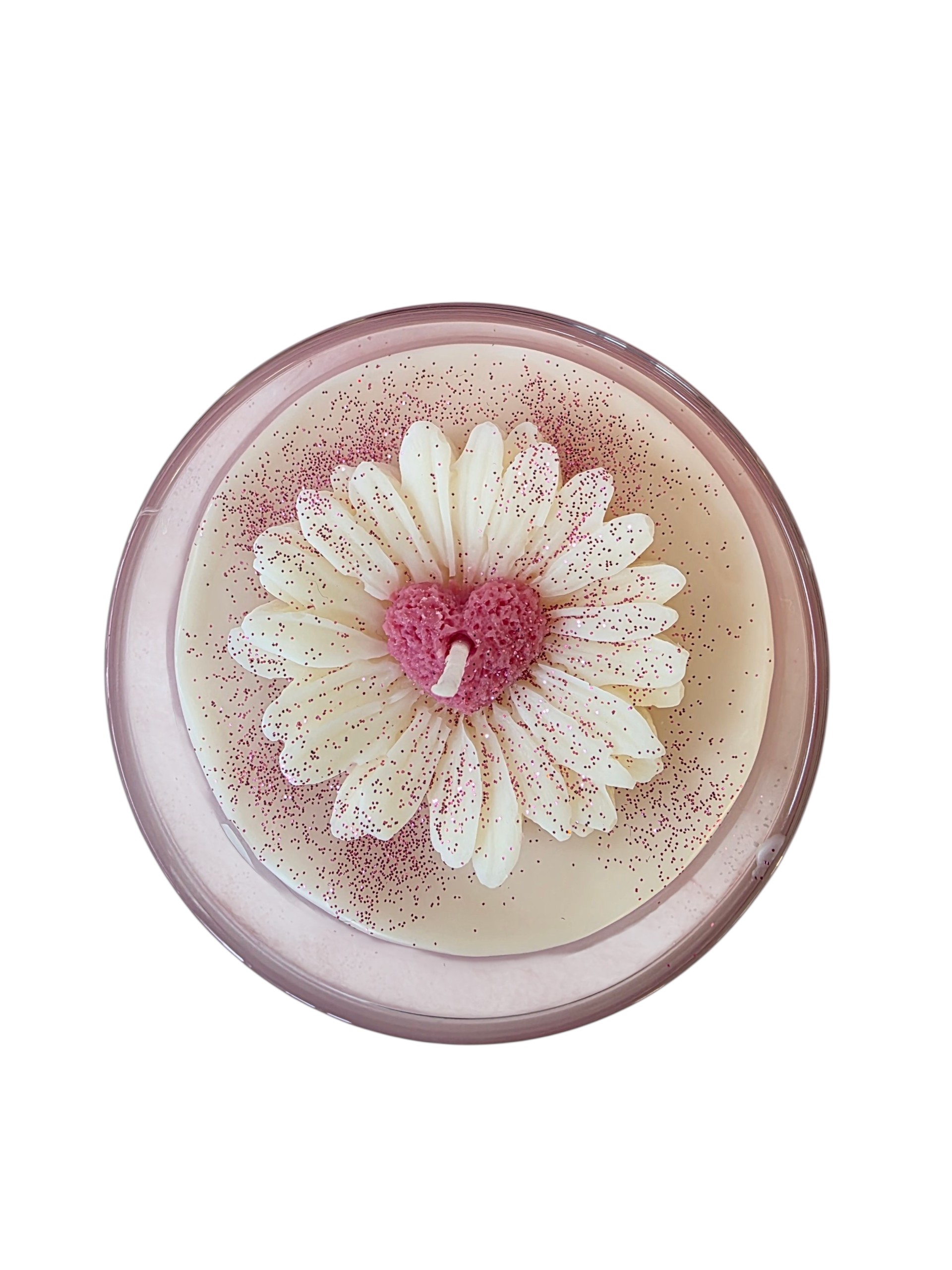 De zachte vanillegeur zorgt voor een warme, knusse sfeer in huis. De combinatie van roze en witte tinten geeft de kaars een romantische uitstraling. Als finishing touch is de kaars afgewerkt met een schattige margriet, waarvan de bloemkern de vorm heeft van een klein hartje – een subtiel en liefdevol detail.