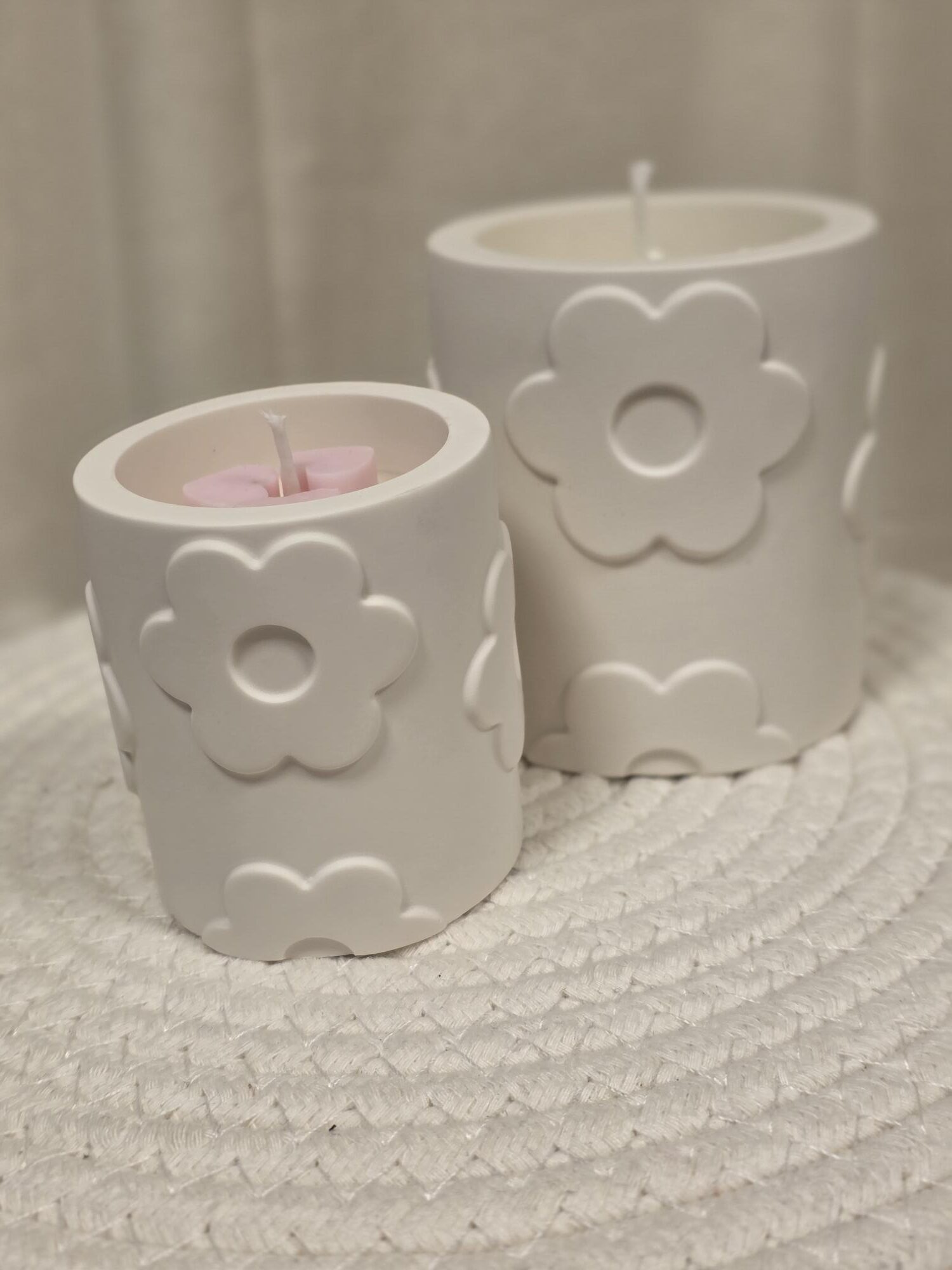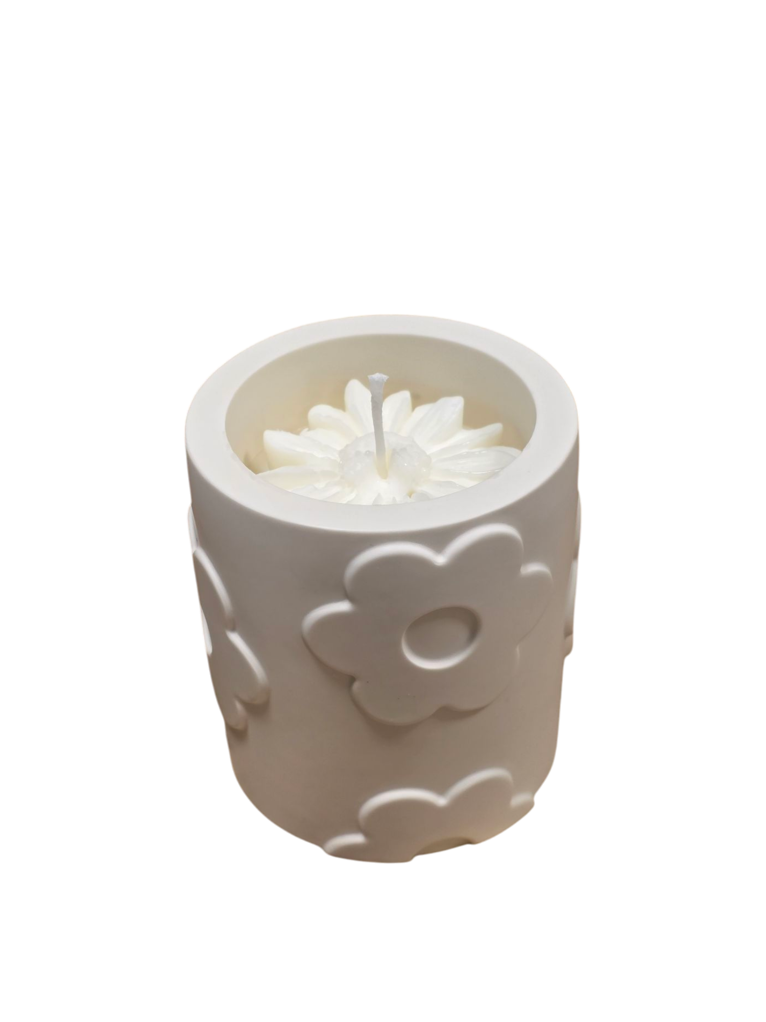 Het grote kaarspotje Luna is een echte blikvanger. Dit handgemaakte potje van Jesmonite is niet alleen stijlvol, maar ook duurzaam. De subtiele bloemetjes in reliëf geven het een romantische en speelse uitstraling.