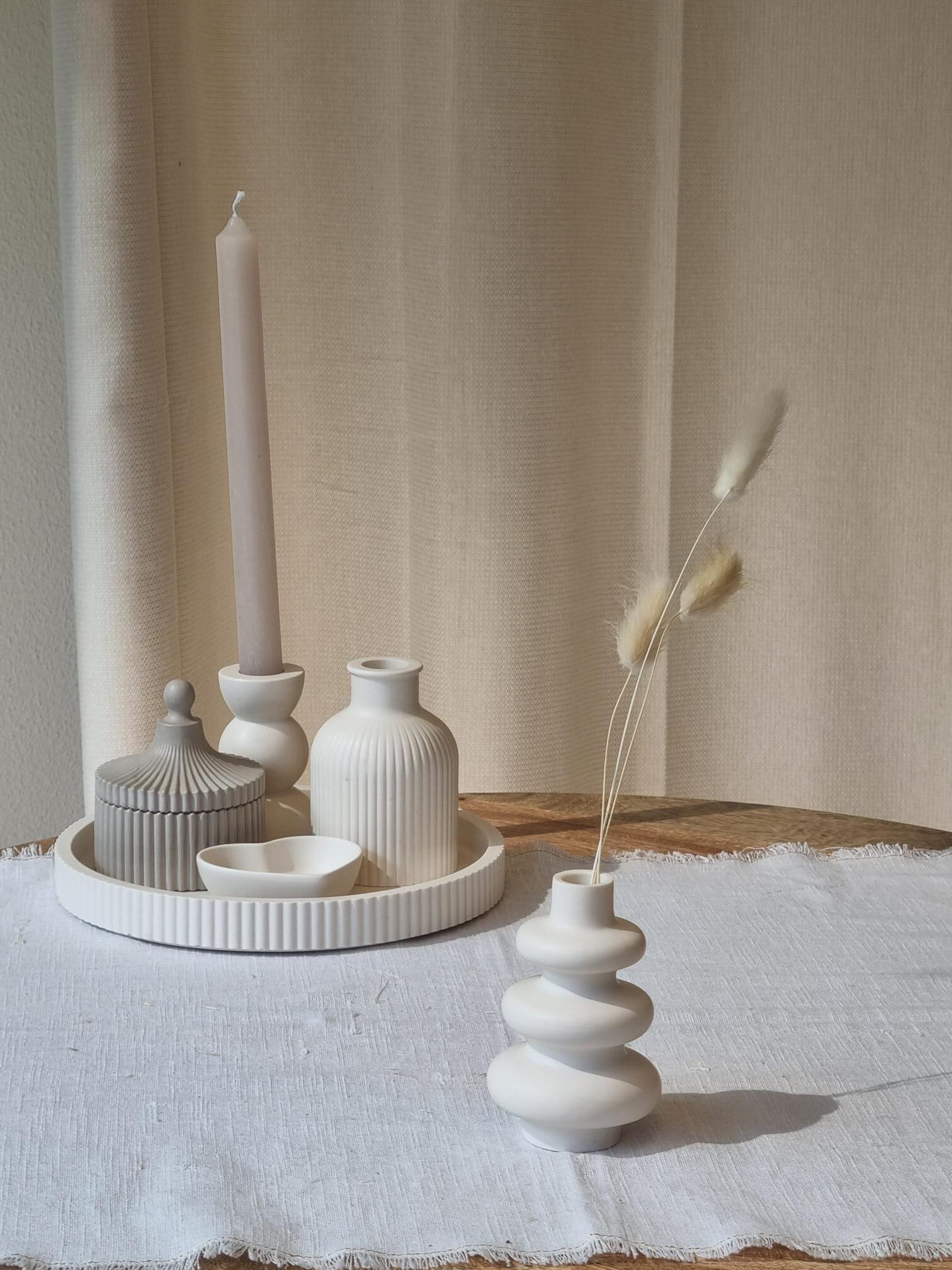 Voor wie houdt van mixen en matchen: vaas Jasmijn combineert perfect met andere items uit onze exclusieve collectie woonaccessoires. De verschillende woonaccessoires zijn verkrijgbaar in meerdere kleuren en vormen samen een stijlvol geheel.