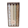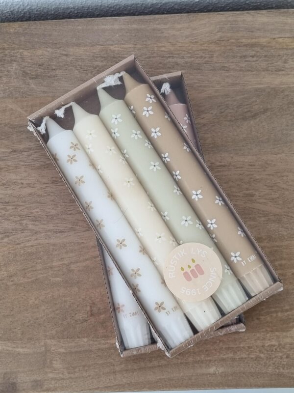 De kaarsen zijn gemaakt van stearine, een natuurlijk eco-vriendelijk materiaal. De onderkant loopt schuin af, zodat ze makkelijk in een kaarsenstandaard passen.
