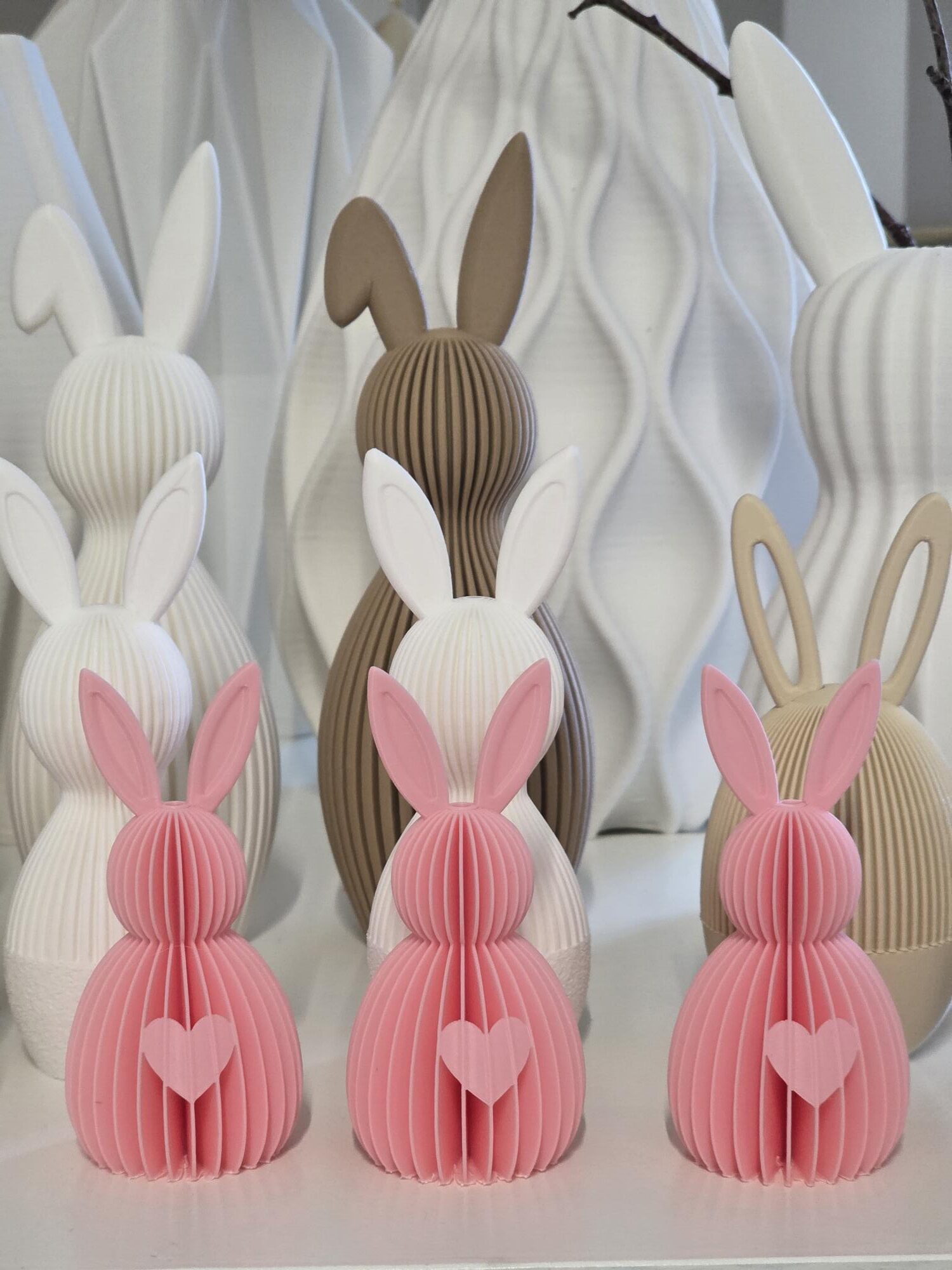Dit 3D geprinte paashaasje is een lieve en stijlvolle toevoeging aan je paasdecoratie. Dankzij de luchtige ribstructuur heeft het haasje een zachte, bijna papieren uitstraling — terwijl het volledig 3D geprint is.