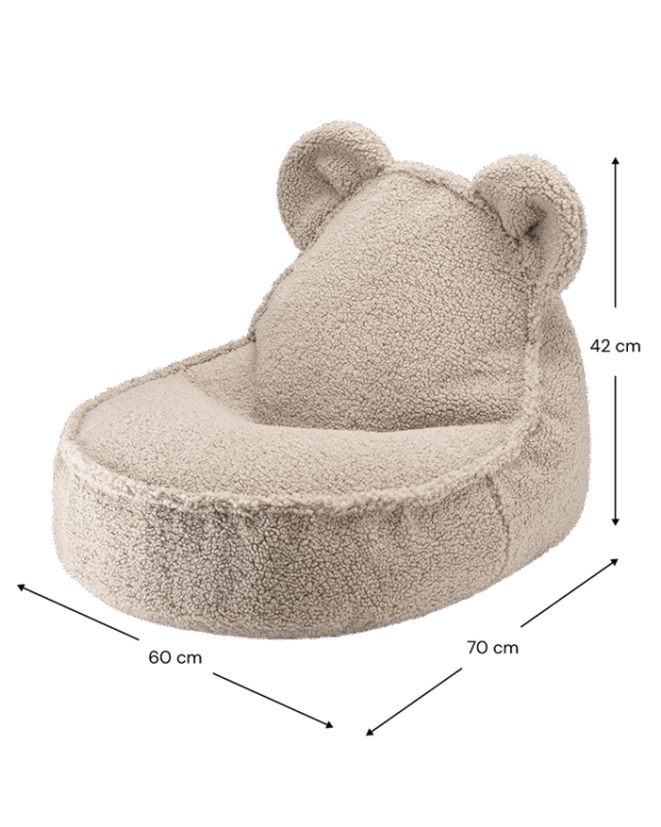 De schattigste beer zitzak is een luxueus en functioneel accessoire voor elke kinderkamer. Iedereen heeft af en toe een rustige plek nodig om te ontspannen en een favoriet boek te lezen na een lange dag en onze knusse en comfortabele berenzitzak is een perfecte keuze. En kijk eens naar die kleine oortjes.